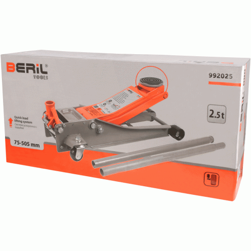BERIL 992025 ir profesionāls hidrauliskais domkrats, kas izstrādāts intensīvai lietošanai autoservisos un riepu montāžas darbnīcās. Pateicoties tā īpaši zemajam profilam (75 mm), tas ir ideāli piemērots automašīnām ar mazu klīrensu, savukārt maksimālais pacelšanas augstums (505 mm) ļauj ērti apkalpot arī apvidus automobiļus.