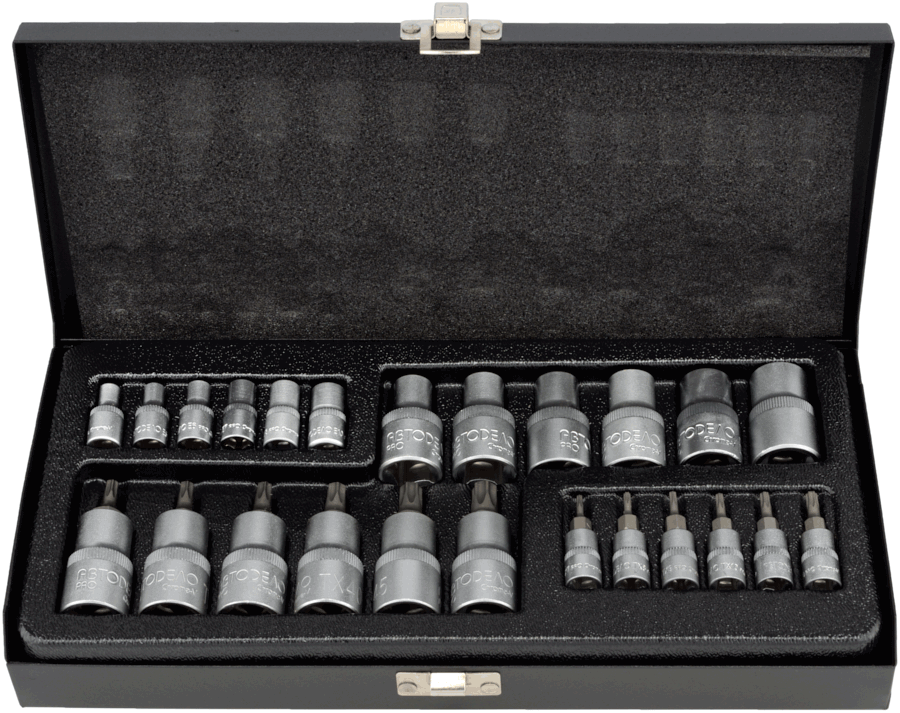 Komplektā ietilpst gala muciņas ar pieslēgšanas kvadrātu 1/4″ un 1/2″.